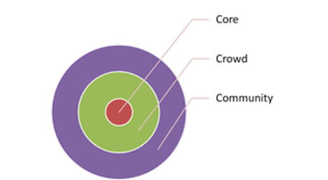 The Crowd circle contains those relationships that have a deeper level of trust characterized by personal knowledge of each party. A relationship moves from the Community circle into the Crowd by demonstration of trustworthy behavior over time to where the parties involved can reliably predict each other’s behavior. This is the circle where you would typically find relationships with your team members, co-workers, or social organization associates.